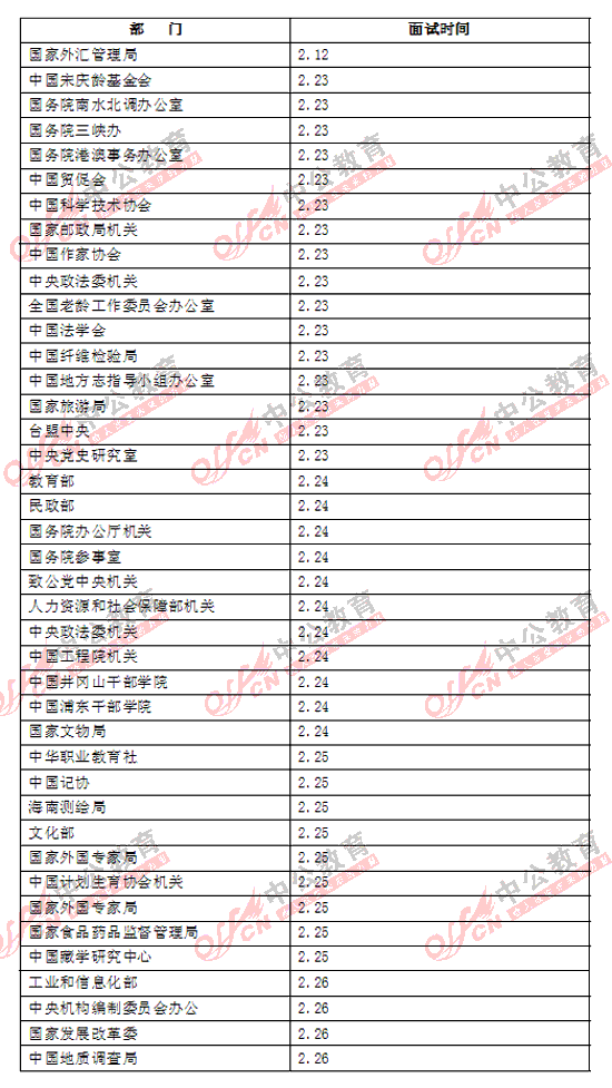 | 2011国家公务员考试各部委面试时间表 |