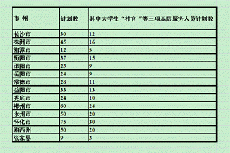 注意:应届毕业生及在湘参加国家、湖南省“三支一扶”和“大学生志愿服务西部”计划人员报考不限地域,定向大学生“村官”招考只面向本市州。