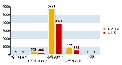 中公教育专家在深入研究了本次招录的职位信息后发现,有1099个职位明确要求考生为应届毕业生,占总招录职位数的23%,与去年的12%相比大有增加,共招录1991人。应届毕业生机会增多。值得注意的是,省直党群系统今年不面向应届毕业生招录。