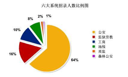 本次考试省直及垂直管理系统共招录3002人,比例达43%。其余各地大连招录人数最多,为830人,其次为沈阳。招录人数最少的地区为绥中县,仅招33名政府机关人员。中公教育专家专门对省直垂直管理的六大系统进行统计,这六大系统共招录2825人,其中,公安系统招录人数最多,为1795人。
