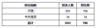 本次考试对政治面貌的限制较去年相比简化了很多,去年对政治面貌分了不限、中共党员、中共党员或共青团员、共青团员、民建或无党派、非中共党员六大类,而今年只区分了不限和中共党员两类。中公教育专家对政治面貌进行统计分析,有96%的职位不限政治面貌,较去年相比增加了4%,政治面貌限制进一步放宽。