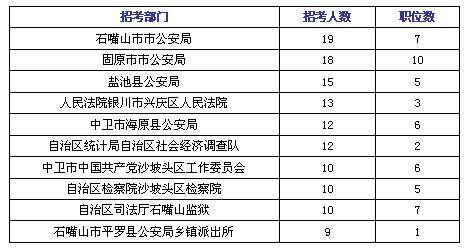 附2:2011年上半年宁夏回族自治区招考人数最多的十大职位