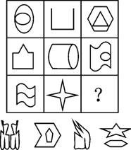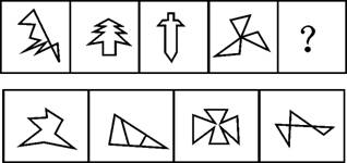 解析:数量类。这个题目是湖北2009年考试中的一道难题。要是学员都学会掌握了华图的数量规律中的精髓。“点线角面素”理论,这个题目就比较简单。一般图形若是比较凌乱,就用点线角面素来解。这个题目就是用角。题干都是9个内角。答案只有D是9个内角。故正确答案选择D。