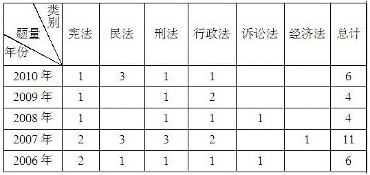 根据上表可以看出,法律部分考查的知识点主要集中在宪法、民法、刑法和行政法,四者中又以后三者为重中之重。所以考生必须有准备有重点地复习,这样才能事半功倍。