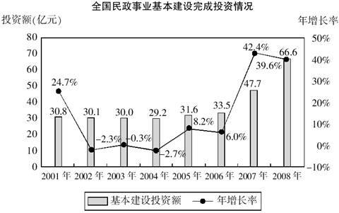 2.2008年民政事业基本建设完成投资比2001年民政事业基本建设完成投资多多少倍?