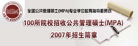 1.2007年,MPA招生院校由83所扩大到100所,所在省、市、自治区由28个扩大到29个,并面向全国各省、市、自治区招生。其中,除98所部属和地方院校,还有中国人民解放军国防科学技术大学、中国社会科学院研究生院。中央组织部将继续推荐政府部门高级管理人员参加全国MPA联考,由北京大学和国家行政学院合作培养。